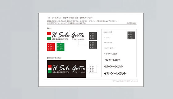 新宿イタリアンイル・ソーレガットのロゴの仕様書